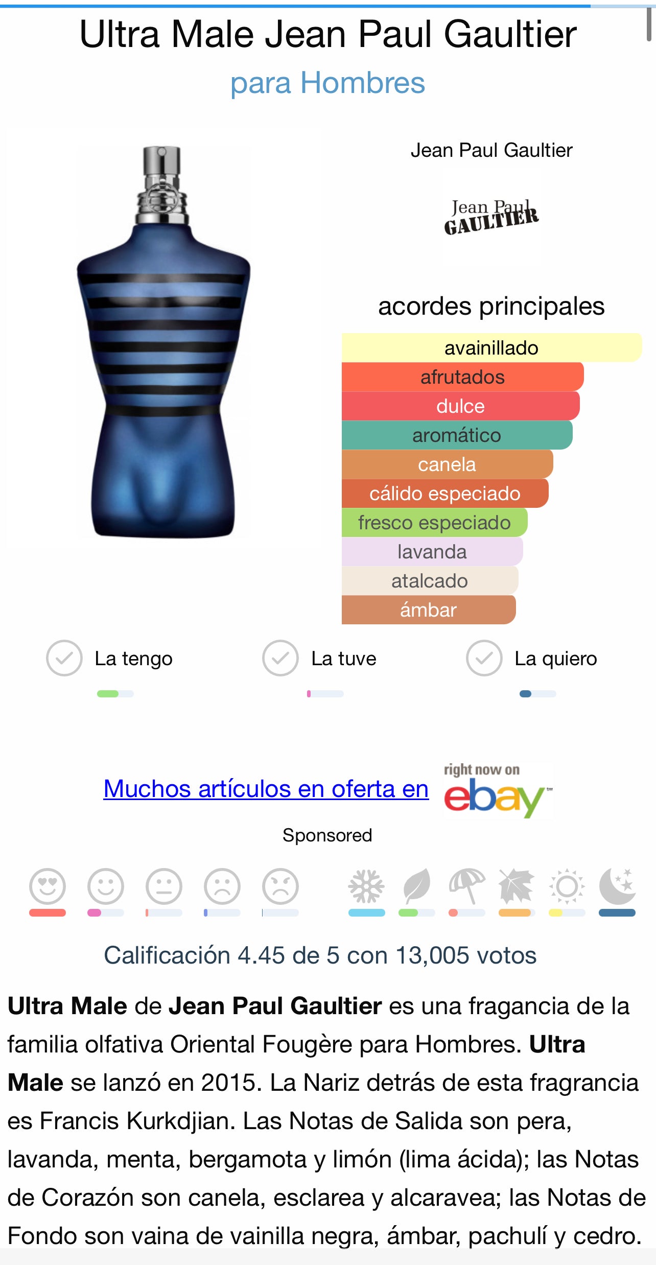 La compre a ciegas y la verdad que fue un acierto, huele muy bien, proyecta muy bien, y dura una locura mucho mas si es en ropa. Sinceramente si tenes menos de 25 años es un perfumazo, es informal, divertido, dulce y el perfume que mas cumplidos me a dado, ojo tener cuidado con los sprays por que ya mas de 5 al menos en mi caso puede llegar a molestar a los demas(yo solo e llegado a usar 5 como maximo, fue en un evento informal y al exterior recomiendo de 3 a 5 para eventos en interiores y 5 para exteriores) tambien tener cuidado con la fatiga olfativa por que si es muy comun que suceda con este perfume no confundir con que no dura por que esto aguanta y bastante.